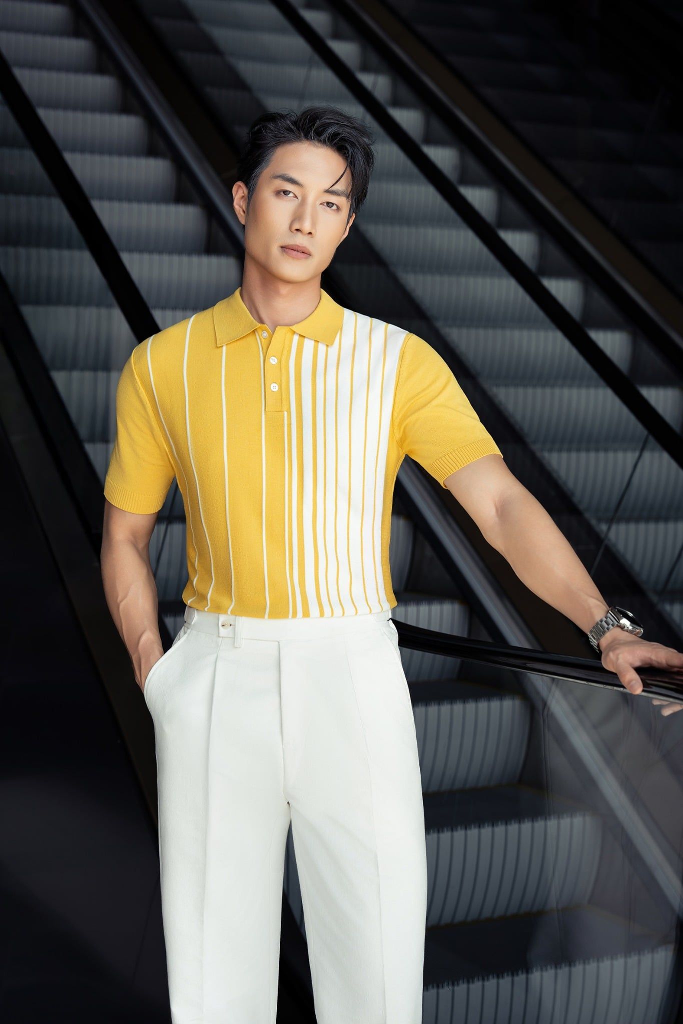 Áo mongtoghi sọc vàng và trắng AP421