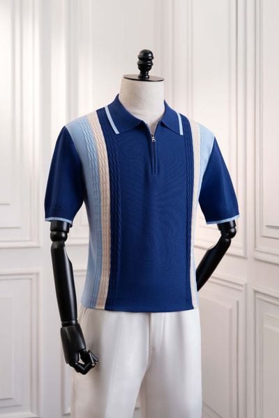 Áo mongtoghi ngắn tay xanh cổ khóa ADAM STORE - AP210
