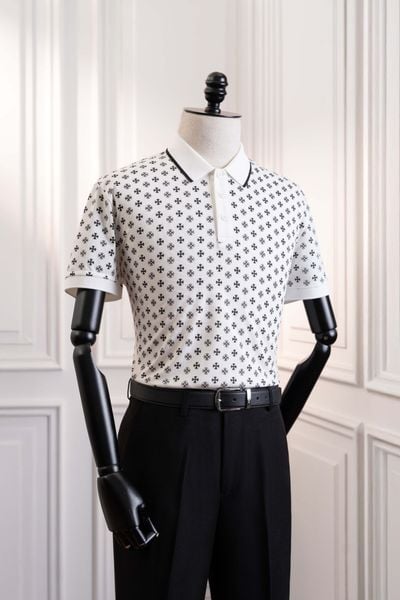 TÊN SẢN PHẨM: Áo Polo Trắng Họa Tiết