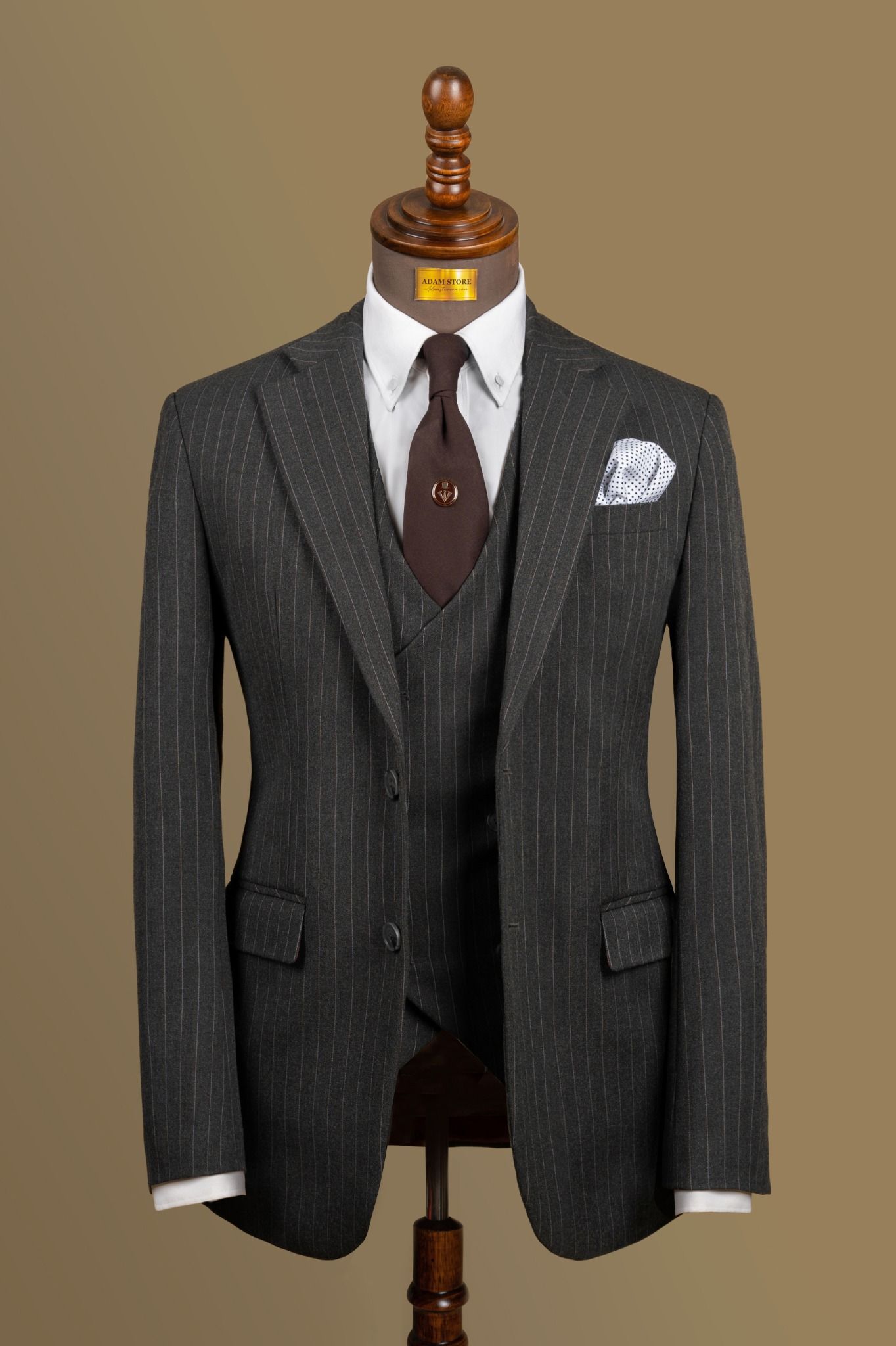 Áo Vest Ghi Tối Kẻ Sọc cổ ve khuyết 1 hàng khuy Adam Store - Av286