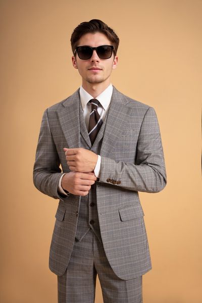Áo Vest Ghi Kẻ Nâu Đen cổ ve khuyết 1 hàng khuy Adam Store - AV299