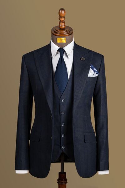 Áo Vest Xanh Kẻ Chìm cổ ve nhọn 1 hàng khuy Adam Store - Av288