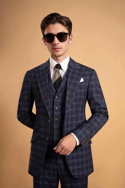 Áo Vest Xanh Kẻ Ô cổ ve nhọn 1 hàng khuy Adam Store - Av298
