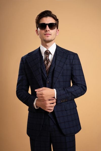 Áo vest xanh kẻ tím vàng cổ ve khuyết 1 hàng khuy Adam Store - AV358