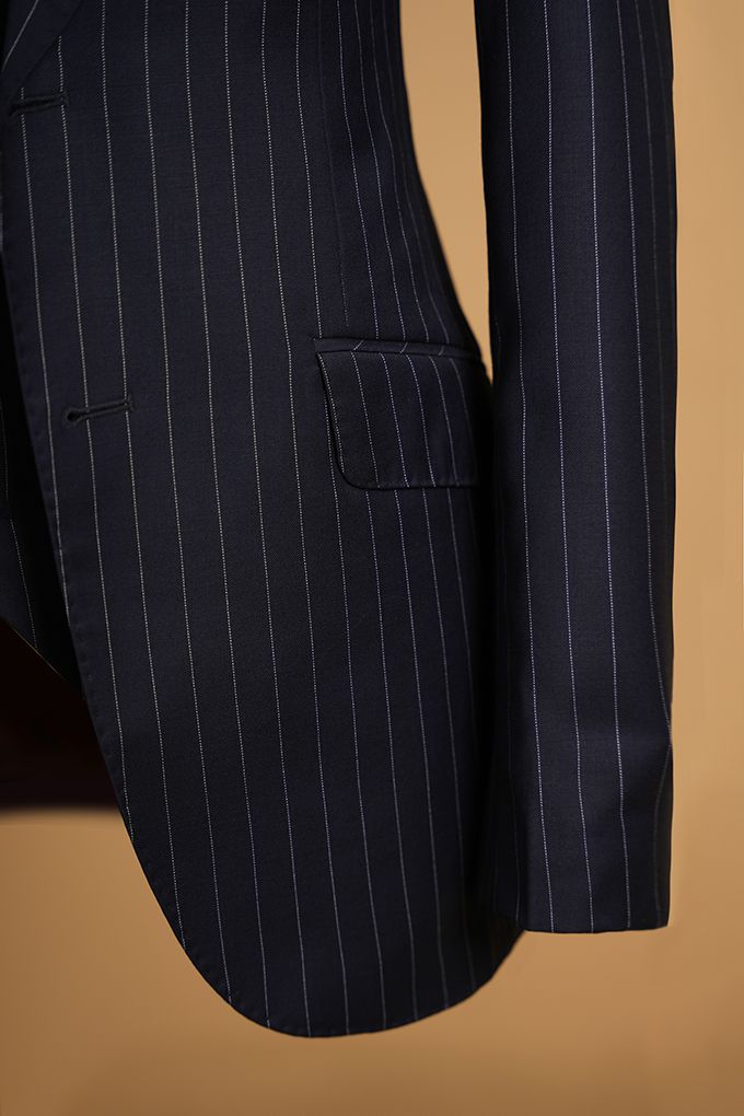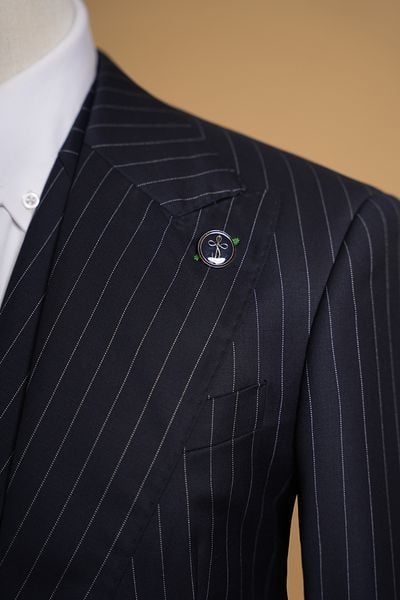 Áo Vest Xanh Sọc cổ ve nhọn 1 hàng khuy The Tuxedo - Txv252
