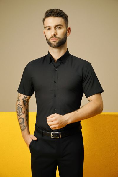 Sơ Mi Ngắn Tay Đen Adam Store - Snt006