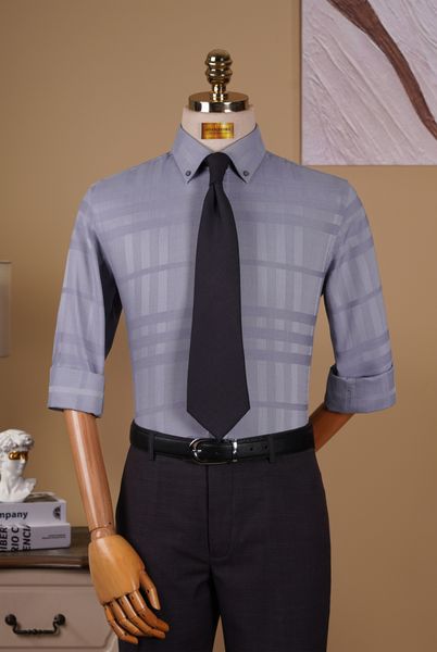 TÊN SẢN PHẨM: Áo Sơ Mi Dài Tay Màu Ghi Kẻ Chìm The Tuxedo