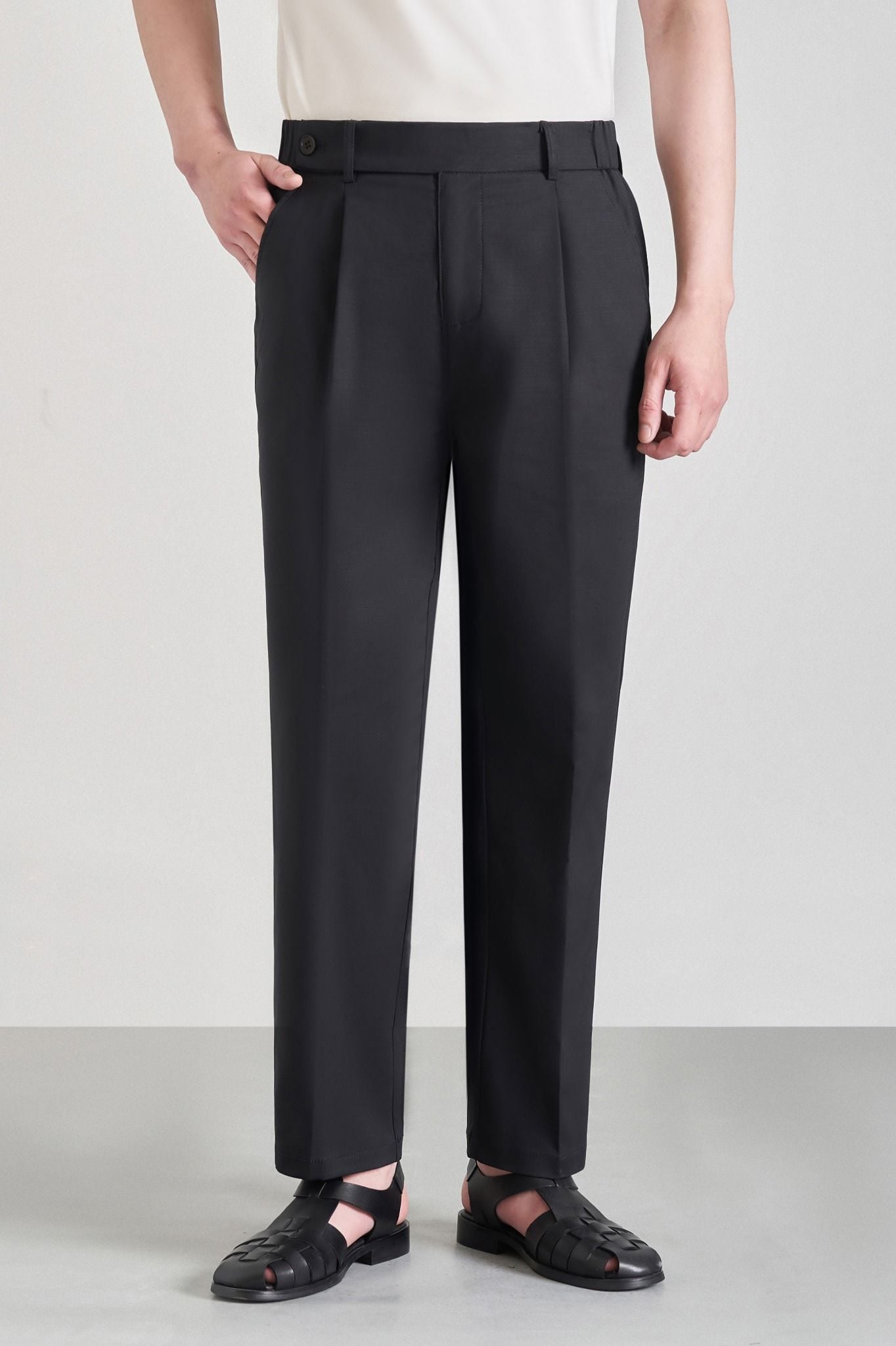 Quần kaki đen trơn cạp chun Adam Store - QK003D