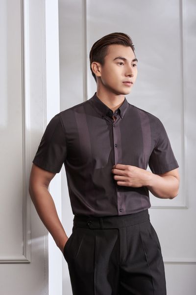 TÊN SẢN PHẨM: Sơ mi nam ngắn tay đen kẻ ghi