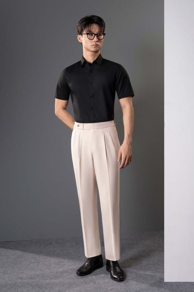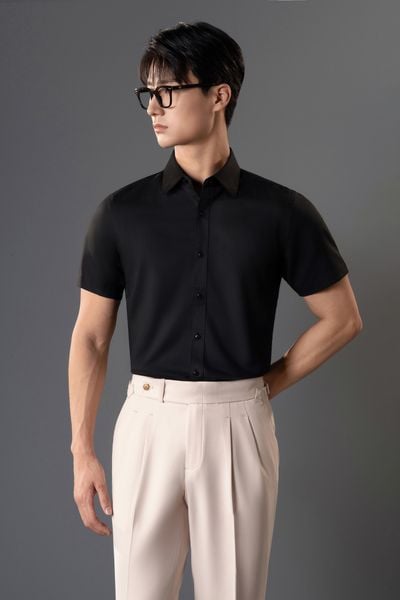 Sơ mi Ngắn Tay CT24 đen trơn Adam Store - SNC018D