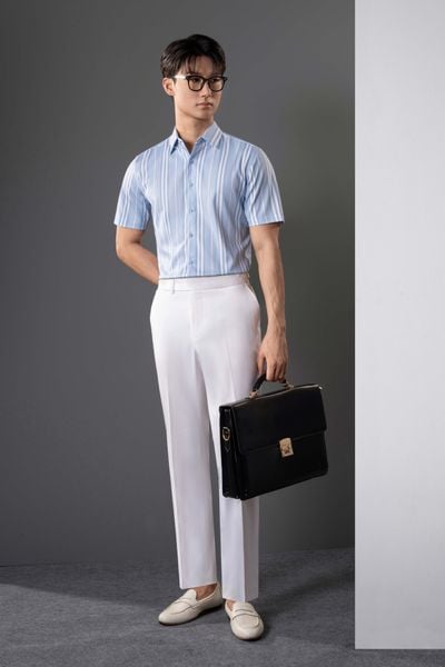 Sơ mi Ngắn Tay CT24 xanh sọc Adam Store - SNC013