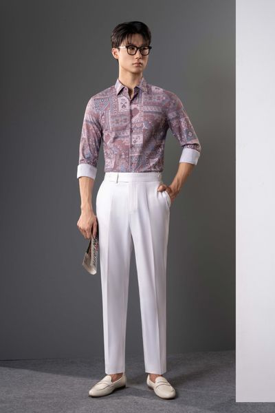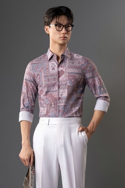 TÊN SẢN PHẨM: Áo Sơ Mi Dài Tay Màu Đỏ Nhạt Họa Tiết