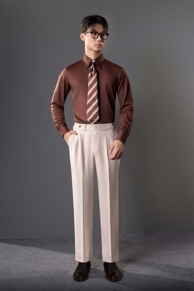 Sơ mi dài tay nâu trơn Adam Store - SMC160N