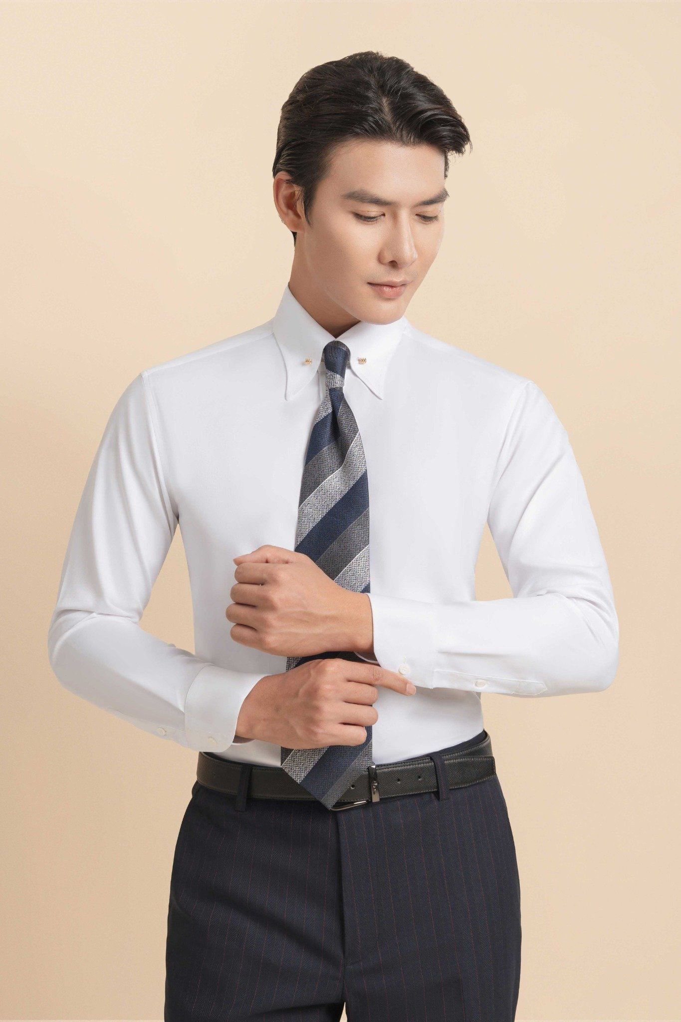 Sơ mi trắng cổ nhọn cài phụ kiện - SMC175