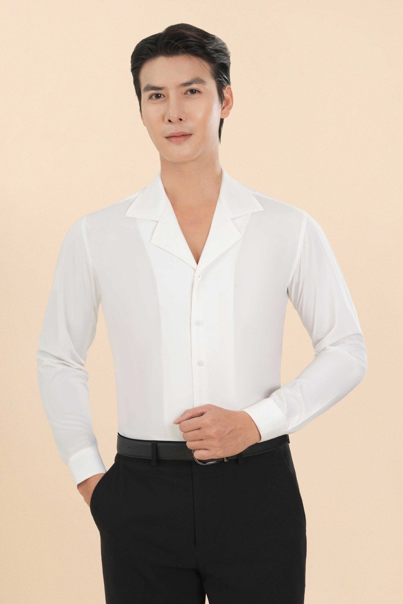 TÊN SẢN PHẨM: Áo Sơ Mi Dài Tay Màu Trắng Gạo Cổ Cuba