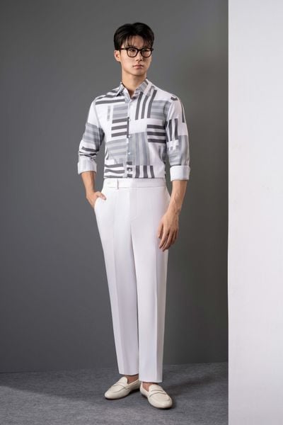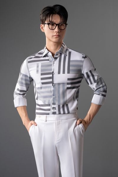 TÊN SẢN PHẨM: Áo Sơ Mi Dài Tay Màu Trắng Kẻ Xanh Đen