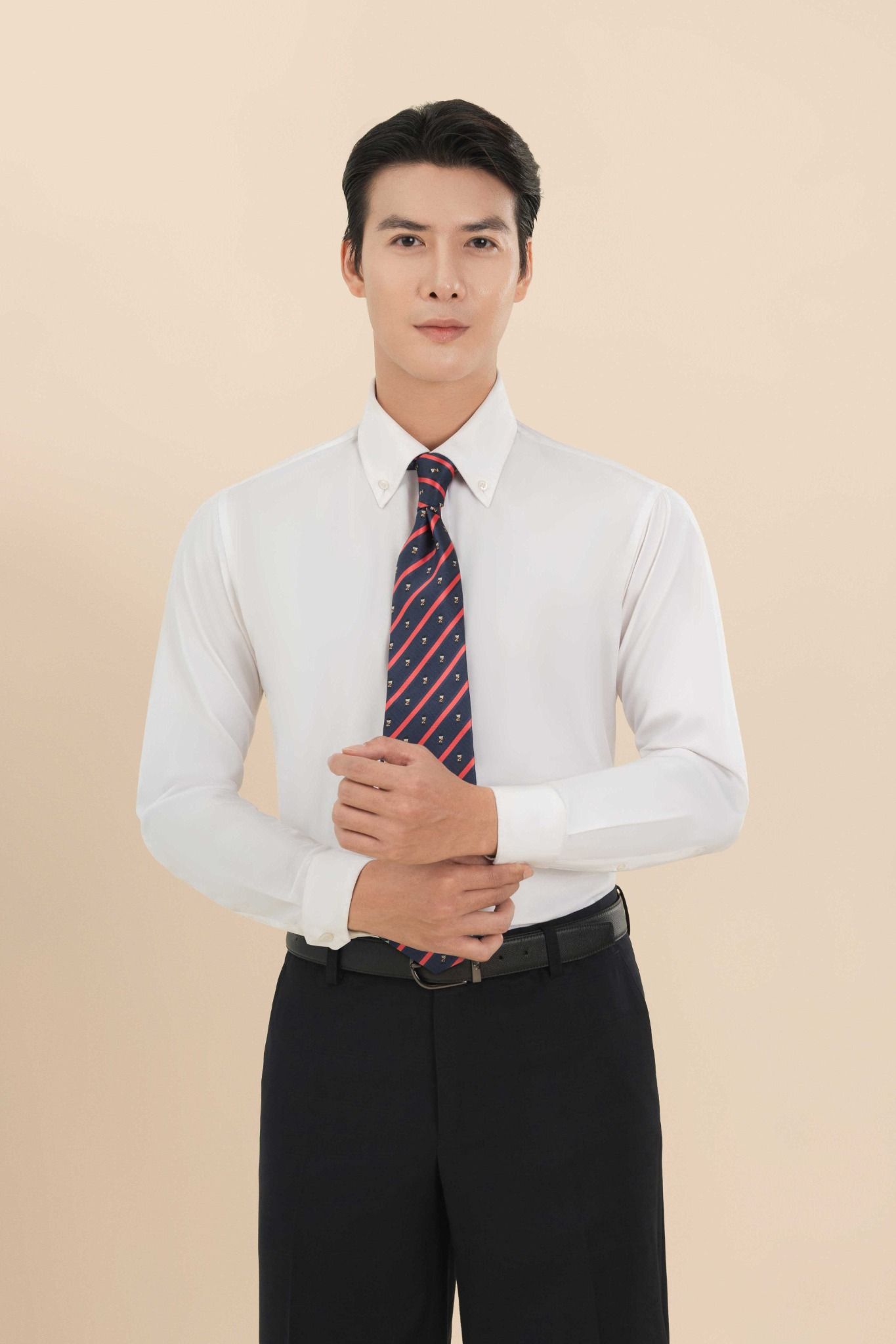 TÊN SẢN PHẨM: Áo Sơ Mi Dài Tay Màu Trắng Cổ Nhọn Bấm Cúc The Tuxedo