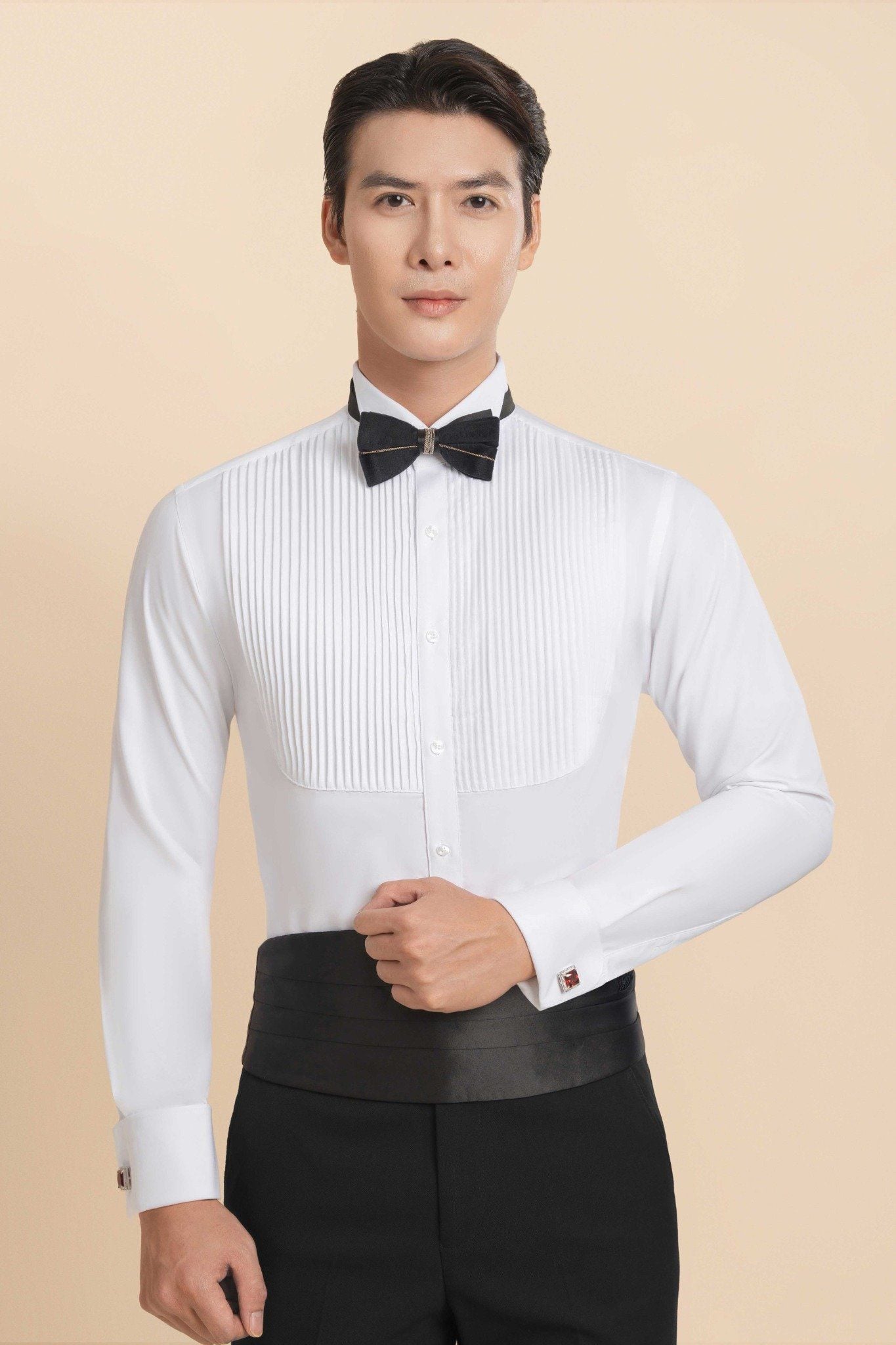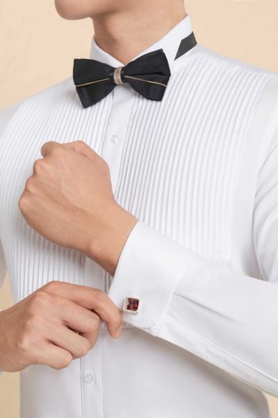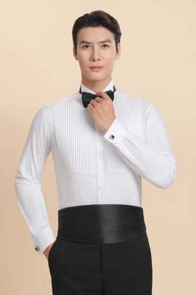 TÊN SẢN PHẨM: Áo Sơ Mi Dài Tay Màu Trắng Xếp Ly Dọc The Tuxedo