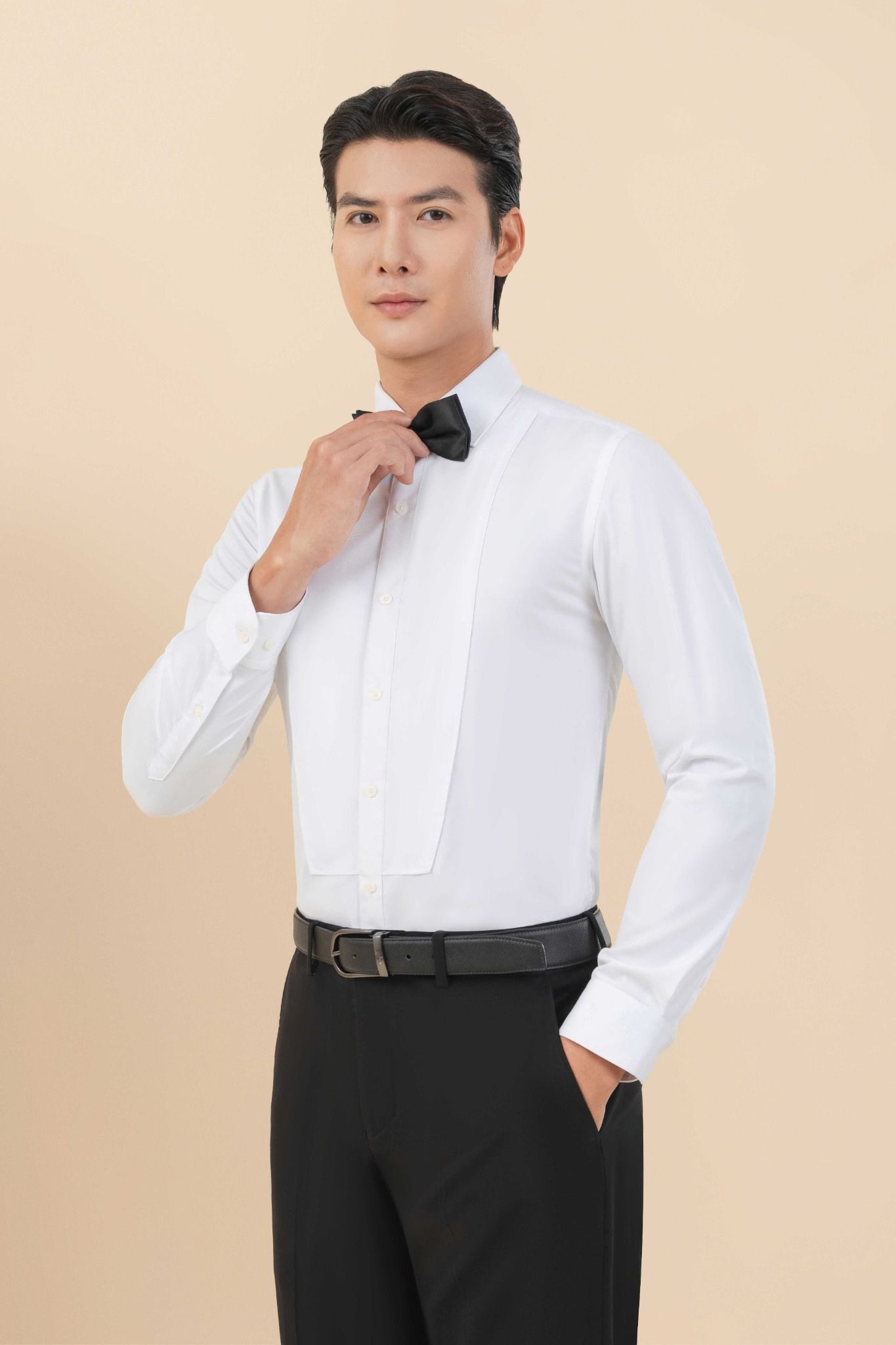 TÊN SẢN PHẨM: Áo Sơ Mi Dài Tay Màu Trắng Xếp Ly Gân Nối The Tuxedo