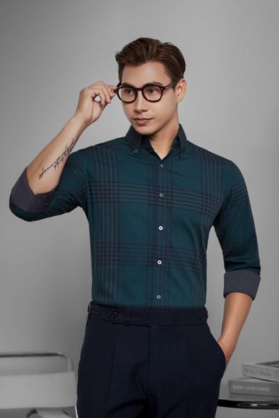 Áo Sơ Mi Dài Tay Màu Xanh Rêu Kẻ Caro Adam Store - SDTTK0043