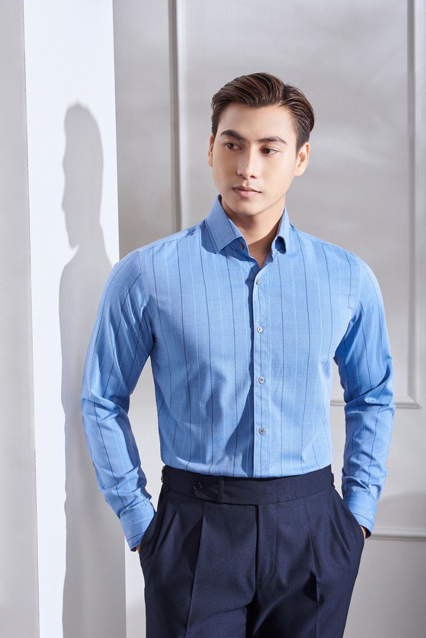Áo Sơ Mi Dài Tay Màu Xanh Sáng Kẻ Sọc Adam Store - SDTTK0040X